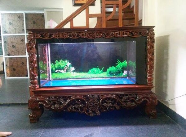 - Phụ kiện gồm: chân nắp gỗ + đèn led tiết kiệm điện + bộ lọc tràn trên + sủi thanh hoặc sủi viên+ sưởi + trang trí cây nhựa + Phù điêu hoặc tranh 3d đằng sau bể + cá nhỏ