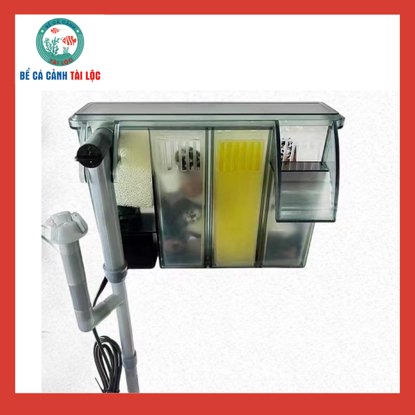 Thiết kế nhỏ gọn, tiết kiệm diện tích: Lọc treo bên thành bể, không chiếm diện tích đáy, phù hợp cho các bể kính không khoan đáy.