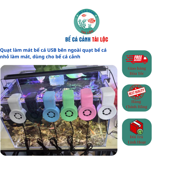 Quạt làm mát bể cá USB là thiết bị tiện lợi, chuyên dùng cho hồ cá cảnh mini và bể thủy sinh. Vào mùa nóng, nhiệt độ nước tăng cao dễ khiến cá bị sốc nhiệt, quạt làm mát sẽ giúp ổn định nhiệt độ nước, bảo vệ sức khỏe cá và cây thủy sinh.