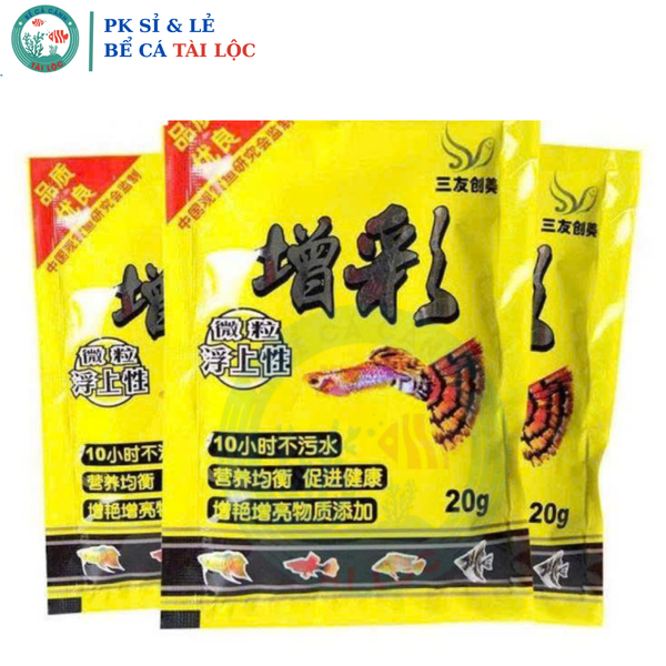 Thức ăn cá cảnh gói 20g là dòng thức ăn hạt mịn chuyên dụng cho các loại cá nhỏ thủy sinh như cá bảy màu, cá neon, cá tam giác, cá betta con, cá tetra… Công thức giàu protein, vitamin và khoáng chất, giúp cá phát triển khỏe mạnh, lên màu tự nhiên và đặc biệt không gây bẩn hay đục nước.
